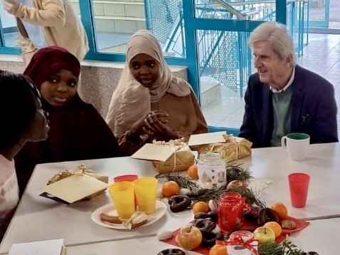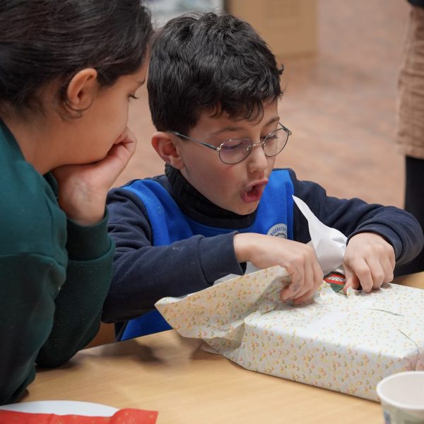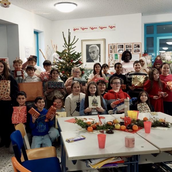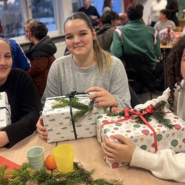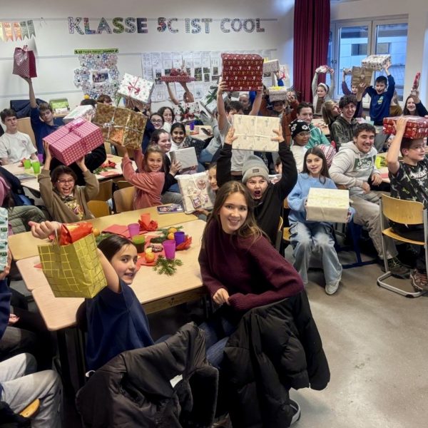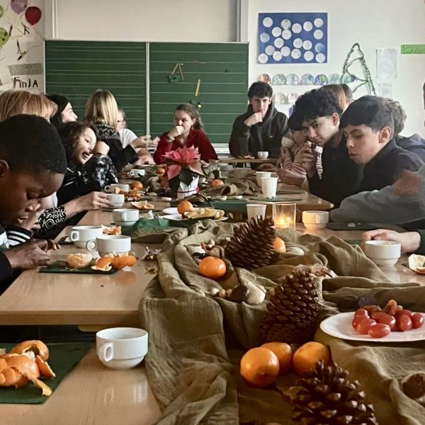 Die große Weihnachtsüberraschung gab es dann kurz vor den Weihnachtsferien. Gemeinsam nahmen die Kinder an einer langen Tafel Platz, feierten die Adventszeit gemeinsam mit dem Vorlesen einer Weihnachtsgeschichte und dem Singen von Weihnachtsliedern, aßen zusammen Plätzchen und tranken Kinderpunsch. Dann bekamen sie die Geschenke überreicht.