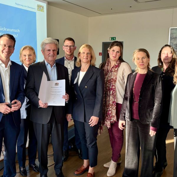 „Sie leben beispielhaft vor, wie respektvolles Zusammenleben im Alltag gelingen kann“, betonte Regierungspräsident Dr. Konrad Schober an uns gewandt beim Festakt. „Mit Ihrem Engagement sorgen Sie dafür, dass Oberbayern für Menschen mit ganz verschiedenen Hintergründen ein Ort ist, an dem sich alle zuhause fühlen können“.
